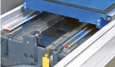 Linearführungen in Verbindung mit Linearmotor für hohe Beschleunigungen und Geschwindigkeiten ebenso wie für Schleichgangoperationen.